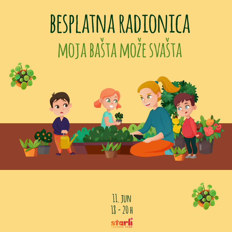 U okviru kreativno-edukativnog programa Zabavni park Starli, Dečija ekološka akademija i Baštenska – inicijativa Novi Sad organizuju besplatanu dvosatnu radionicu za decu i igranje.