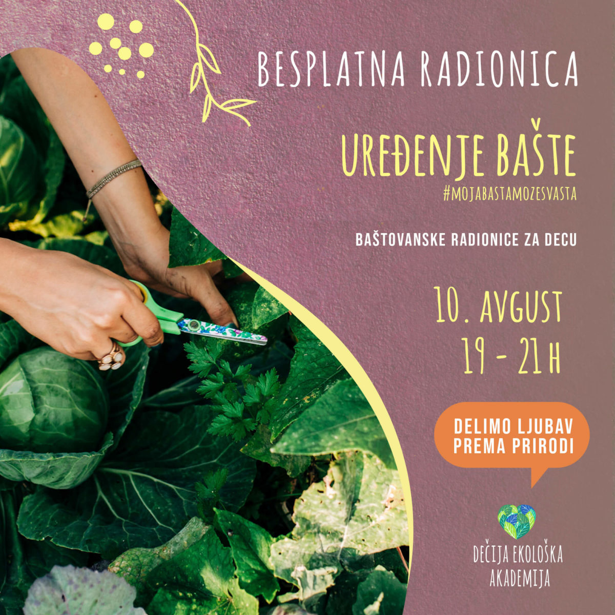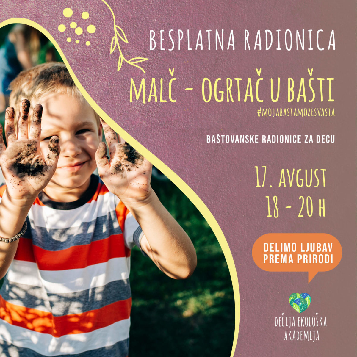 Radionica će biti održana u utorak, 17. jula, od 17 časova, a namenjena je deci uzrasta od 5 do 10 godina. Ovom radionicom nastavljamo sa ciklusom radionica „Moja bašta može svašta“ u ekološkoj bašti Starli. Kroz ciklus radionica želimo da gradimo ekološku baštu sa decom i da kod naših najmlađih probudimo želju za bliskim upoznavanjem sa prirodom. Nastavljamo sa baštenskom matematikom i pričom šta sve može da stane u malu baštu, koliko šargarepe možemo posaditi u baštu i kada, koliko povrću treba hrane i kada ga beremo.